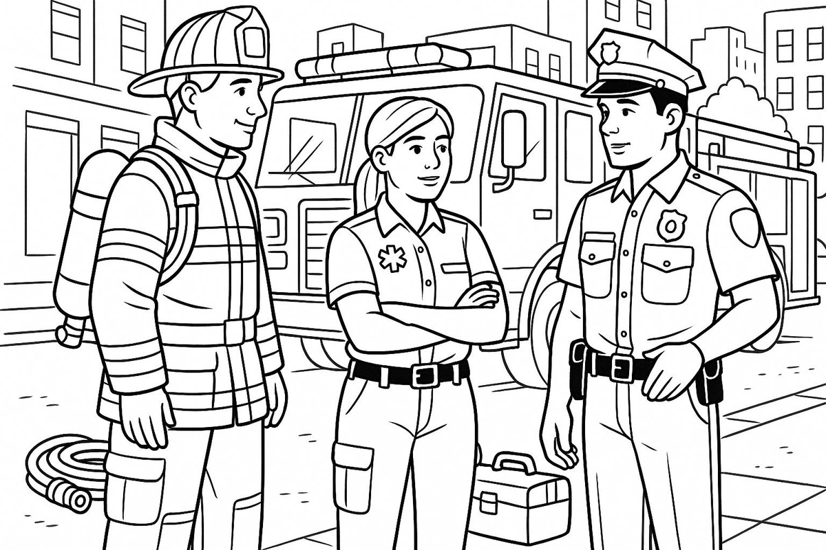 Особенно ценно для детей. Ребёнок видит пожарного не как «дядю в красной машине», а как человека, у которого есть конкретный инструмент, униформа, задачи. Полицейский перестаёт быть абстрактным «охранником порядка» и превращается в фигуру с чёткой функцией: фонарик, наручники, рация. Парамедик — это не просто «врач в скорой», а тот, кто держит дефибриллятор или делает перевязку. Через раскраску профессия становится ближе, понятнее, человеческой.