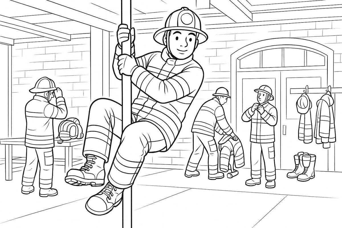 В раскрасках эти фигуры превращаются в своего рода иконки профессий. Но без сухой академичности. Линии показывают позу, динамику, напряжение мышц. Даже простое очертание каски или шеврона уже намекает, кем является человек на картинке. И в этом есть особое удовольствие — доводить детали самому: сделать каску тёмно-красной, форму синей, а перчатки оставить серыми или добавить акцентным жёлтым.